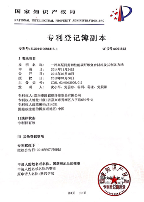 被浙江省認定為:“高新技術企業“、“浙江省科技型中小企業”、“浙江省高成長科技型中小企業”、“嘉興市科技局認定為市級研發中心”;成立“嘉興學院材料與紡織學院的碳纖維研發中心”和實驗基地。
